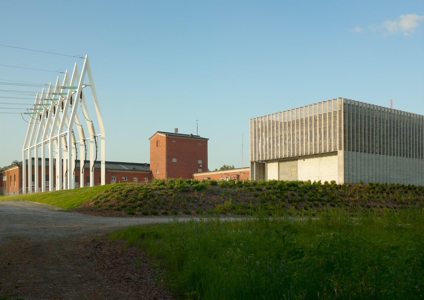 The Finnish main grid operator Fingrid Ltd wanted to respect their roots at this location by investing in the quality of design and construction of the modernisation project. It comprises a new switchgear building, three landscape power pylons, and two powerline terminals.
