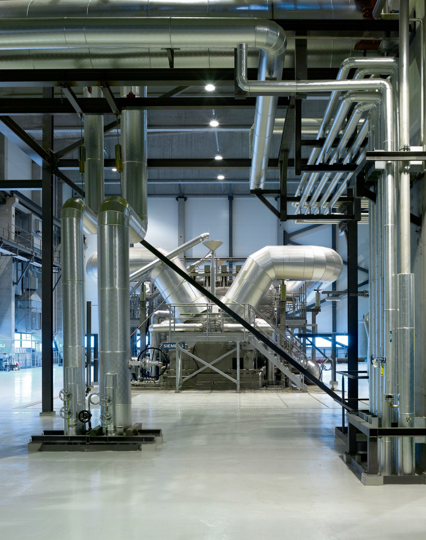 The interiors are generally technical in nature. In the control rooms, high-quality surfaces and partitioning structures, such as designer concrete flooring, wood-grain plasterboard, and glass partitions, were used. The central control desk was specifically designed for the NA4 CHP project.