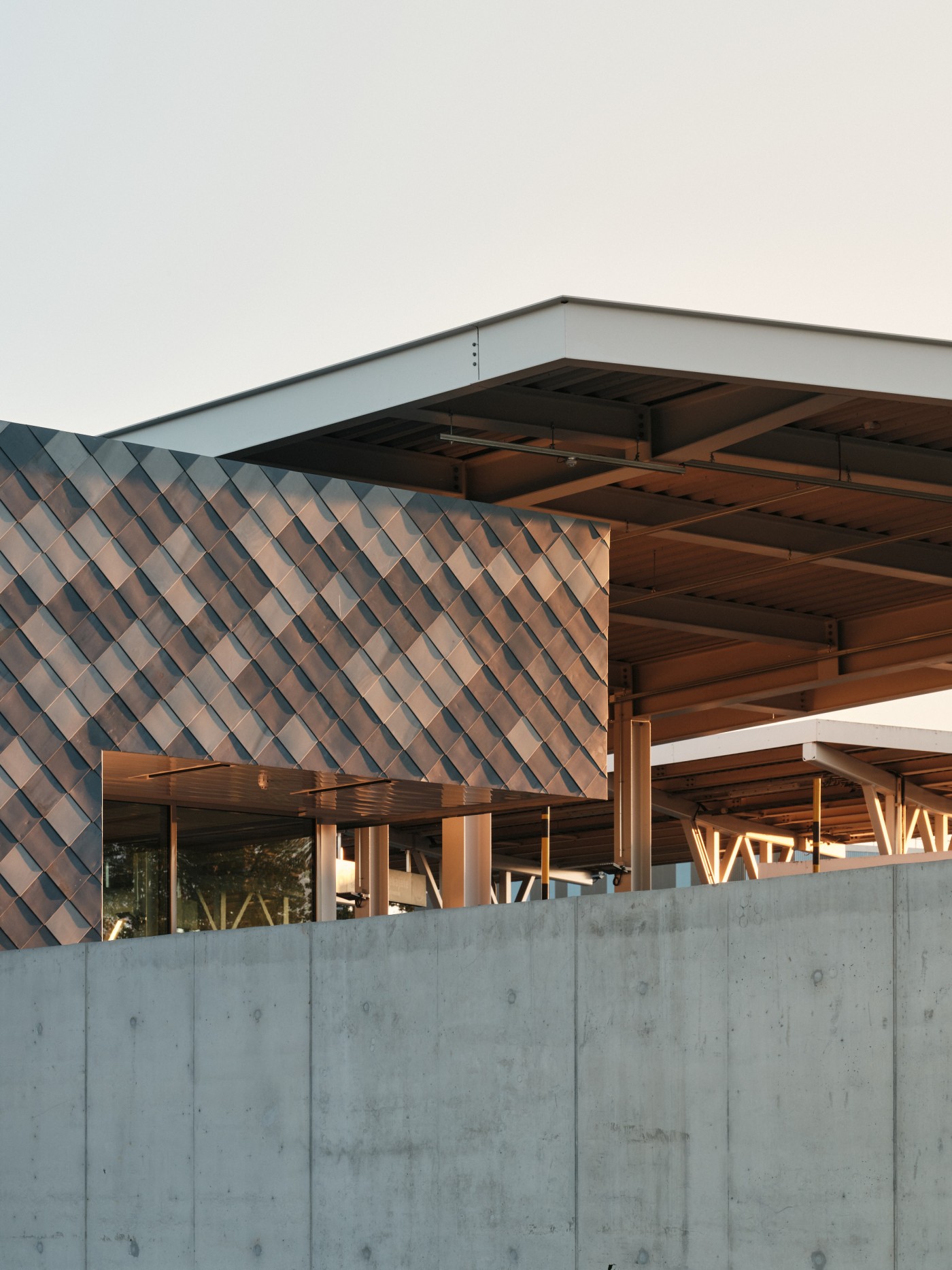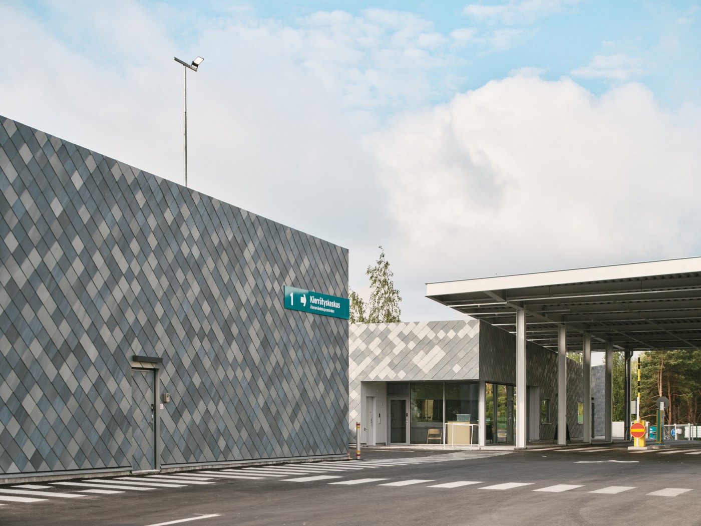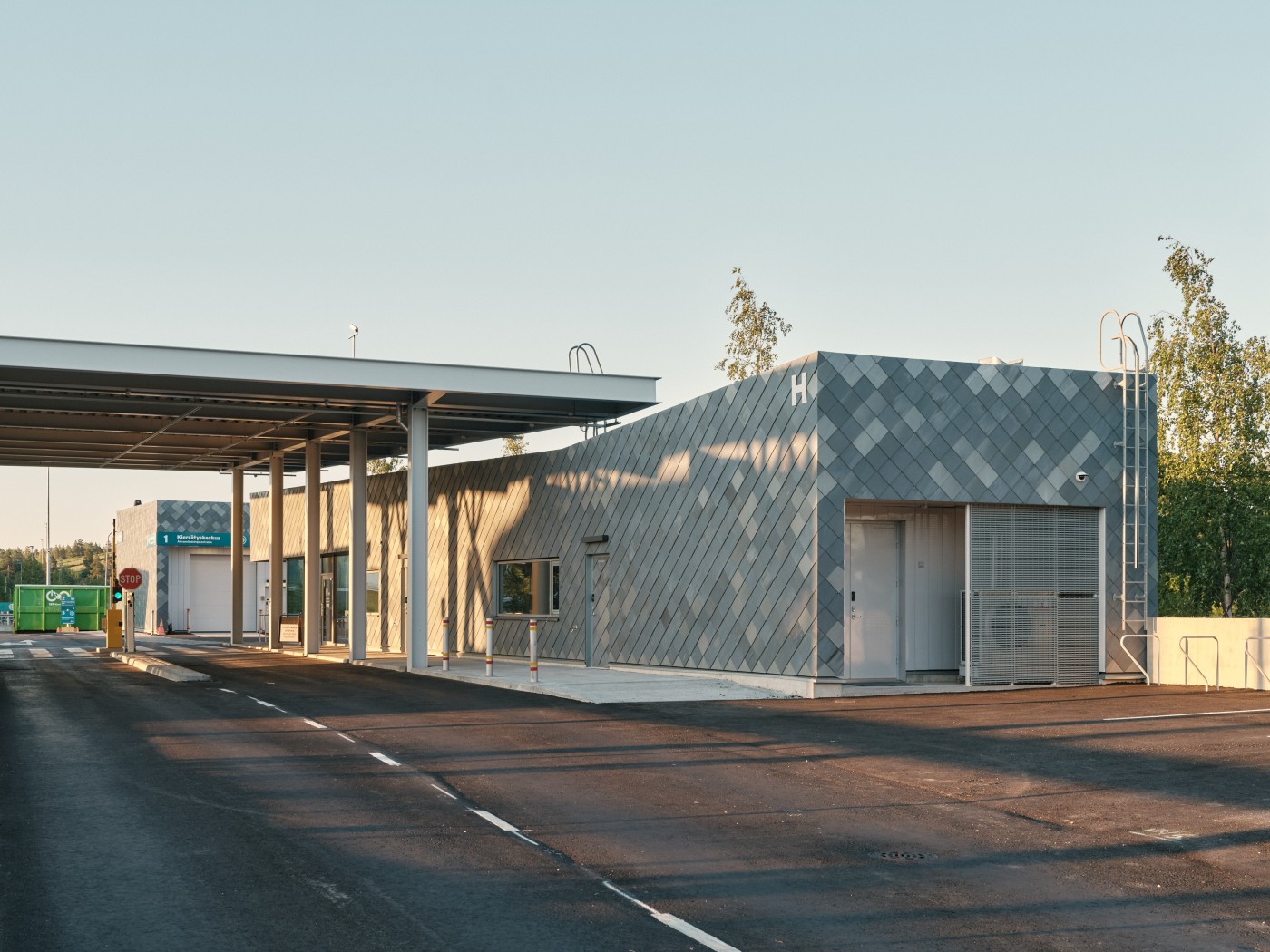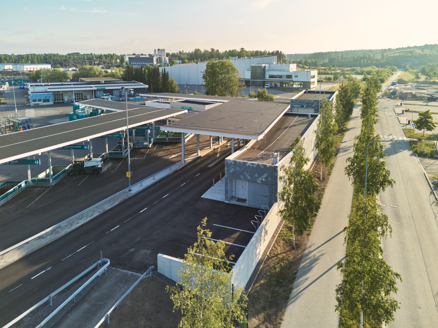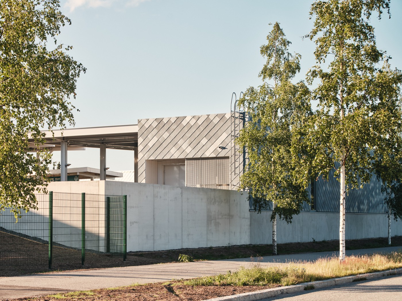 Hanke koostuu kolmesta uudisrakennuksesta, uudesta katoksesta ja olemassa olevan asiakaspalvelurakennuksen toiminnallisesta muutoksesta ja peruskorjauksesta. Rakennusten paikallavalettu korkea betonisokkeli rajaa viereisen tien puoleisen tontin sivun, muodostaen tontille muurin.