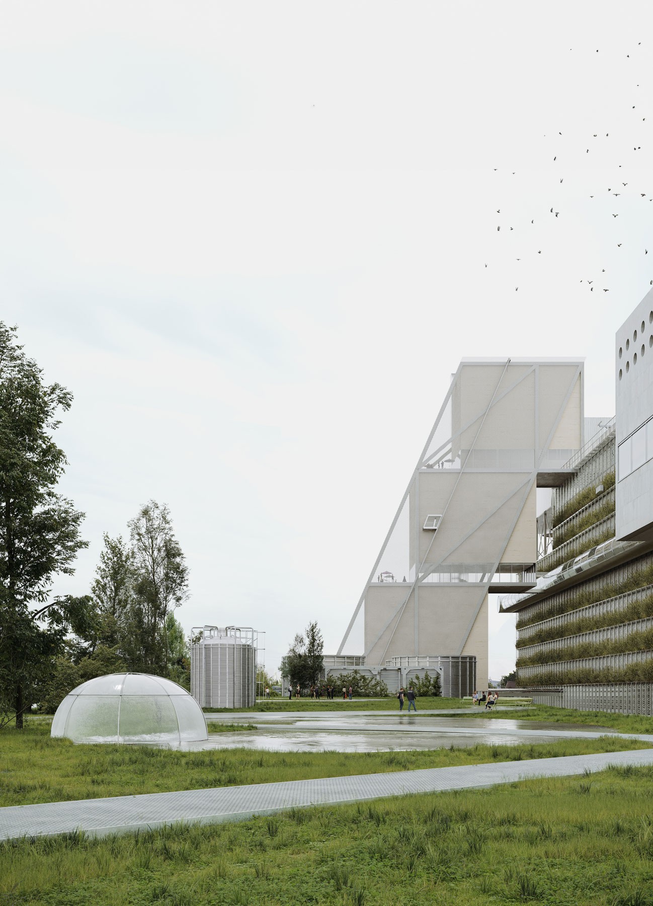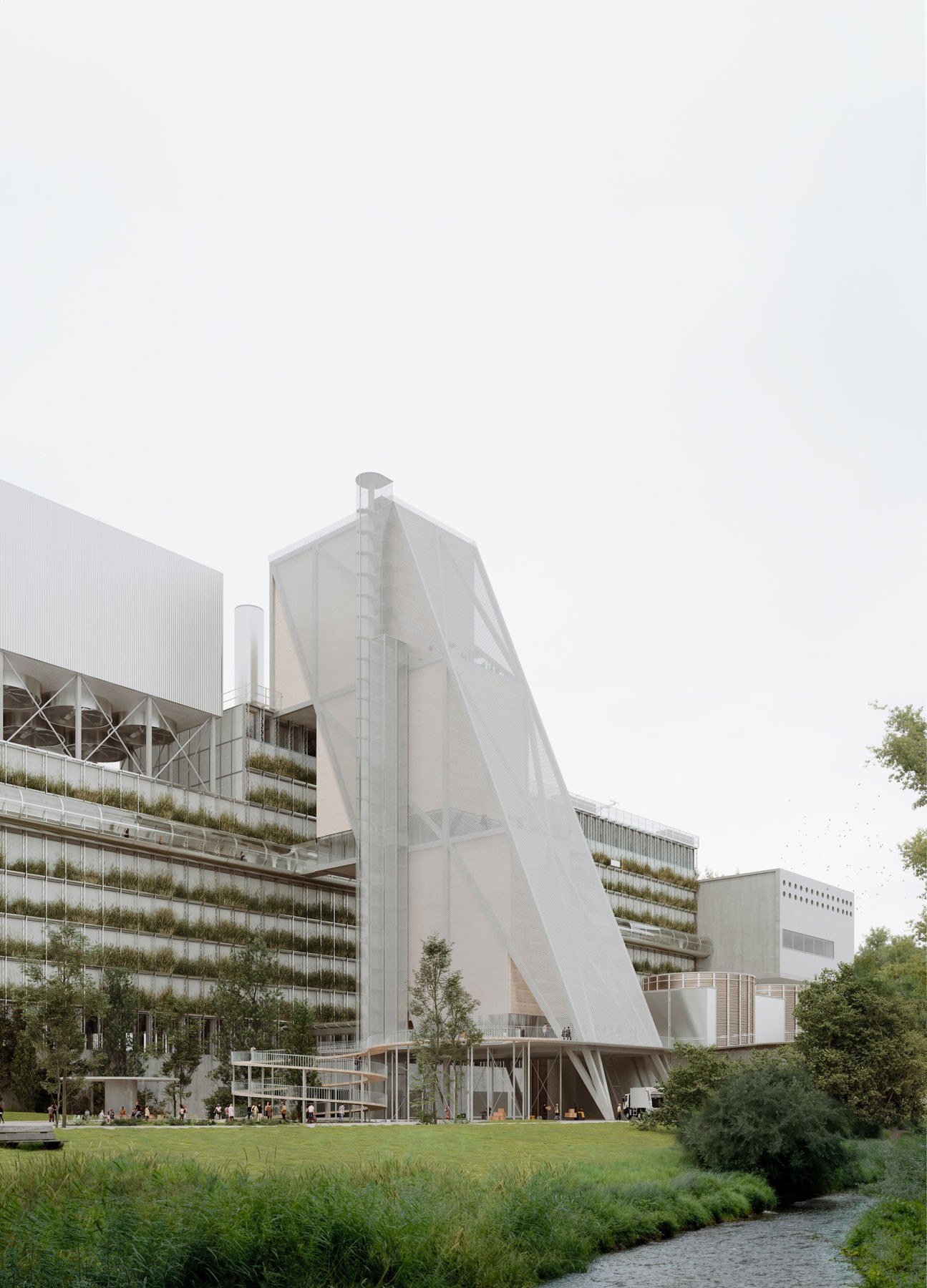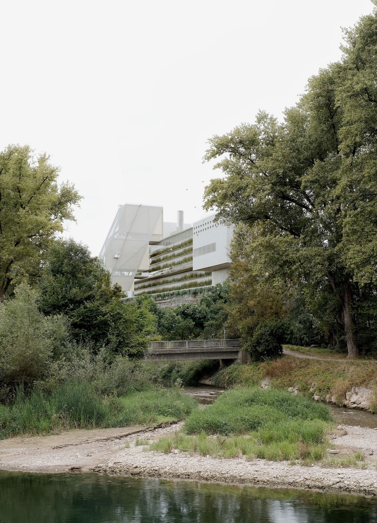 Suunnitelman yhtenä tavoitteena oli jokivarren luonnon ja olemassa olevan biosfäärin ja uuden infrastruktuurin välinen vuoropuhelu. Vedenkäsittelylaitoksen viherkatto suunniteltiin julkiseksi tilaksi, joka pehmentäisi kokonaisuuden maisemavaikutusta ja tukisi paikallista luonnon monimuotoisuutta. Rakennuspaikan rajojen huolellinen ja luonnonmukainen maisemasuunnitelma tekisi mahdolliseksi laitosten ekologisen sulautumisen olemassa olevaan ympäristöön. Suunnitelma tarjoaisi yleisölle uusia tapoja olla yhteydessä luontoon ja Limmat-jokeen.