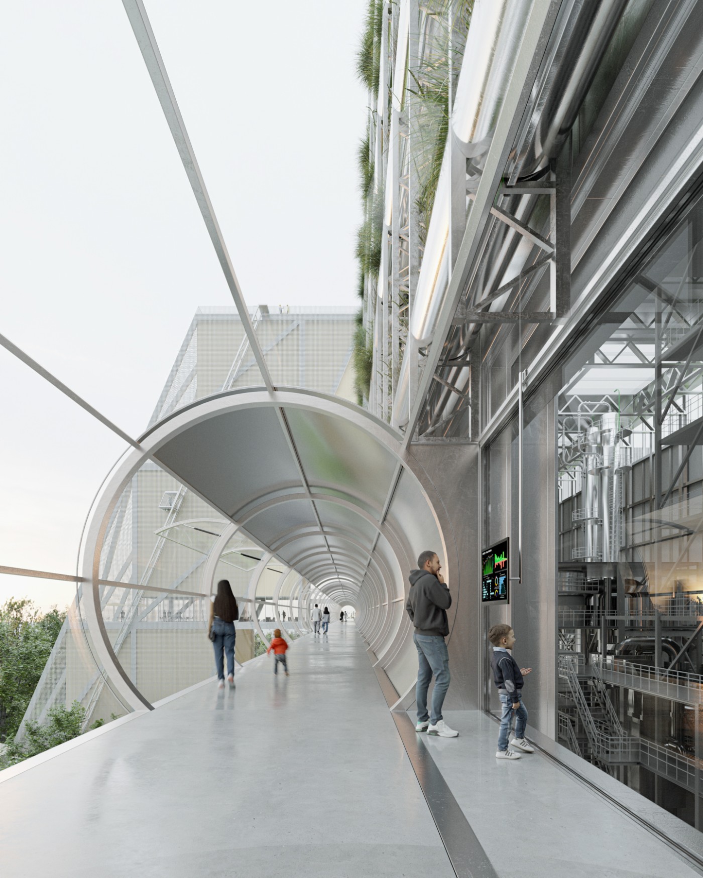 Kilpailuehdotuksemme rakennusten kokonaistilavuus on noin 996 882 kuutiometriä. Laitoskokonaisuus suunniteltiin käsittelemään 252 080 tonnia saapuvaa jätettä vuodessa vuoteen 2050 mennessä ja käsittelemään ja poistamaan tehokkaasti 357 240 tonnia materiaaleja, mukaan lukien hiilidioksidia.